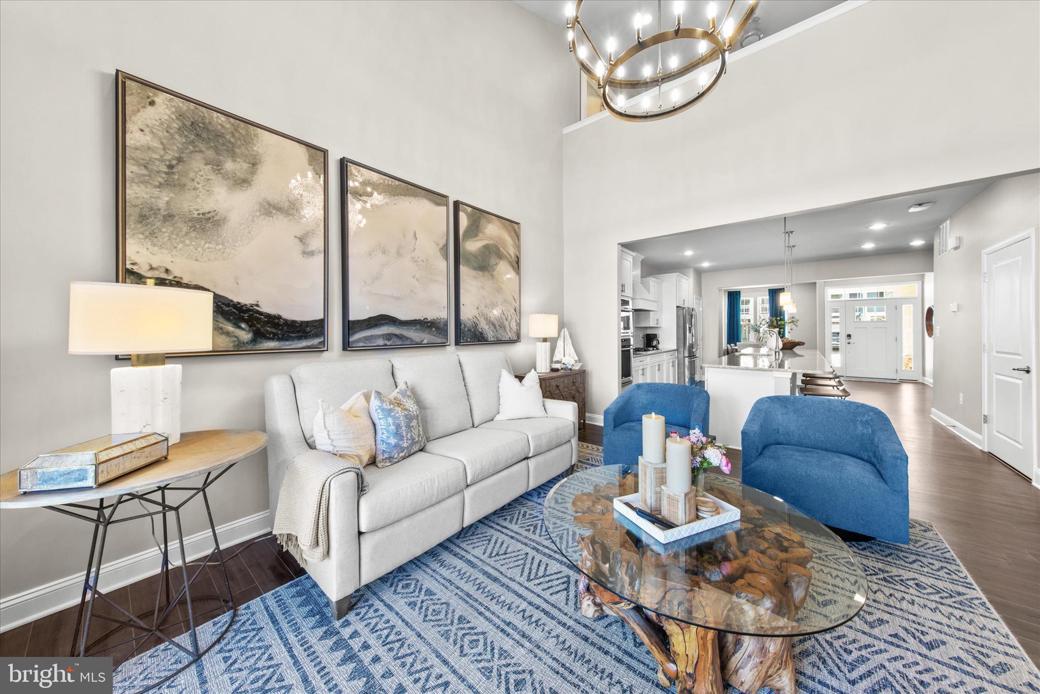 Welcome to easy coastal living at The Peninsula on the Indian River Bay! This beautifully furnished Lennar Jefferson model townhome offers 4 bedrooms and 2.5 baths, blending comfort, style, and effortless entertaining. The spacious gourmet kitchen is the heart of the home, featuring beautiful granite countertops, abundant prep space, and a large island perfect for casual dining and gathering with friends. For more formal meals, an adjacent dining area provides an inviting setting for dinners and celebrations. The kitchen flows seamlessly into the comfortable living room, creating an open and welcoming space for everyday living.
