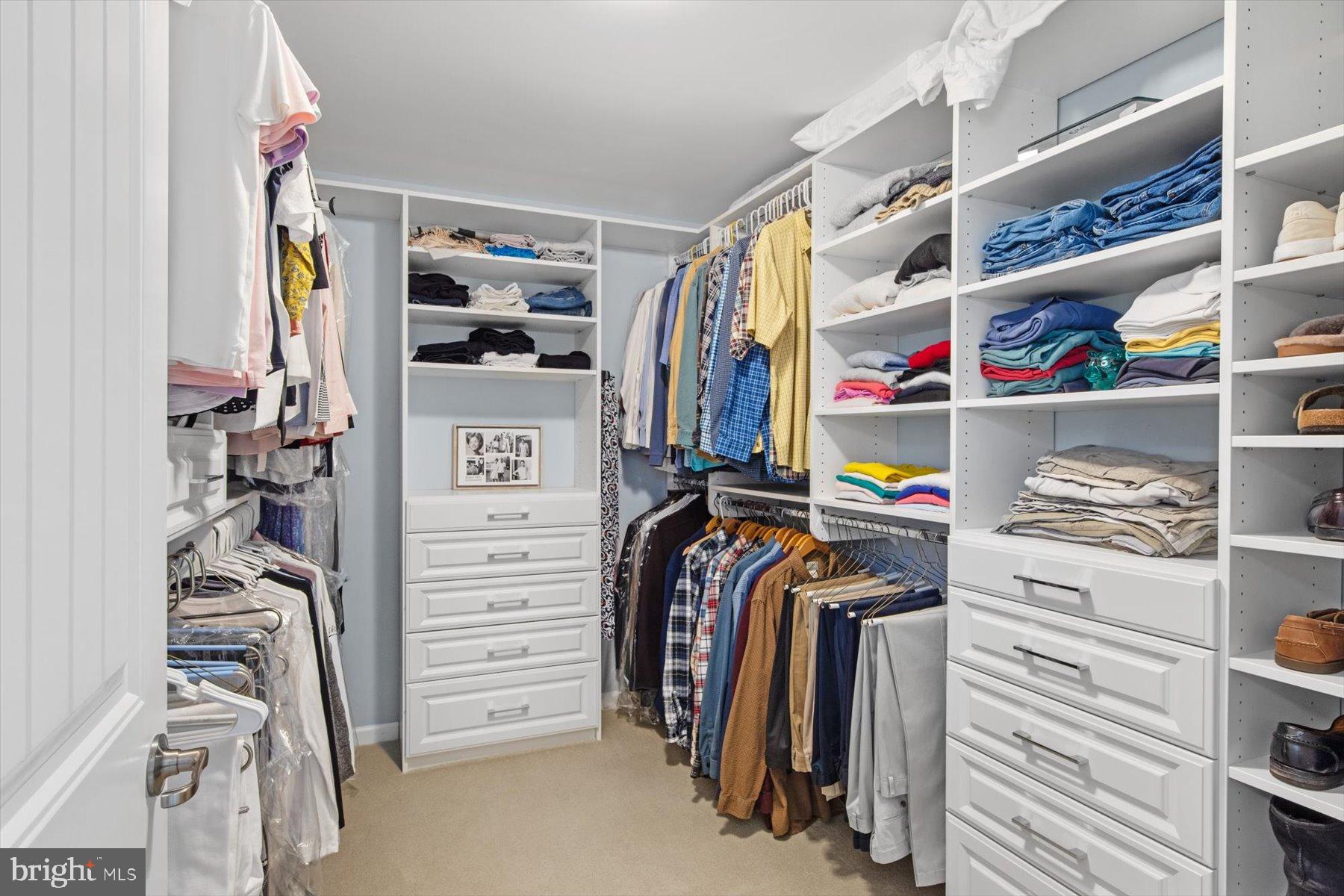 The main living spaces feature hardwood flooring and a dramatic two-story living room with a gas fireplace, creating an open and welcoming atmosphere. The layout offers exceptional flexibility with two bedrooms on the first floor, including an expanded primary suite including a sitting area, custom designed closet system, and a recently renovated spa-inspired bath designed for relaxation. The second main-level bedroom can easily function as a study or home office, ideal for today's lifestyle. Outdoor living is just as inviting, with a beautifully designed large paver patio featuring a stone knee wall, offering the perfect place to relax, entertain, and enjoy peaceful golf course views and glowing evening sunsets.