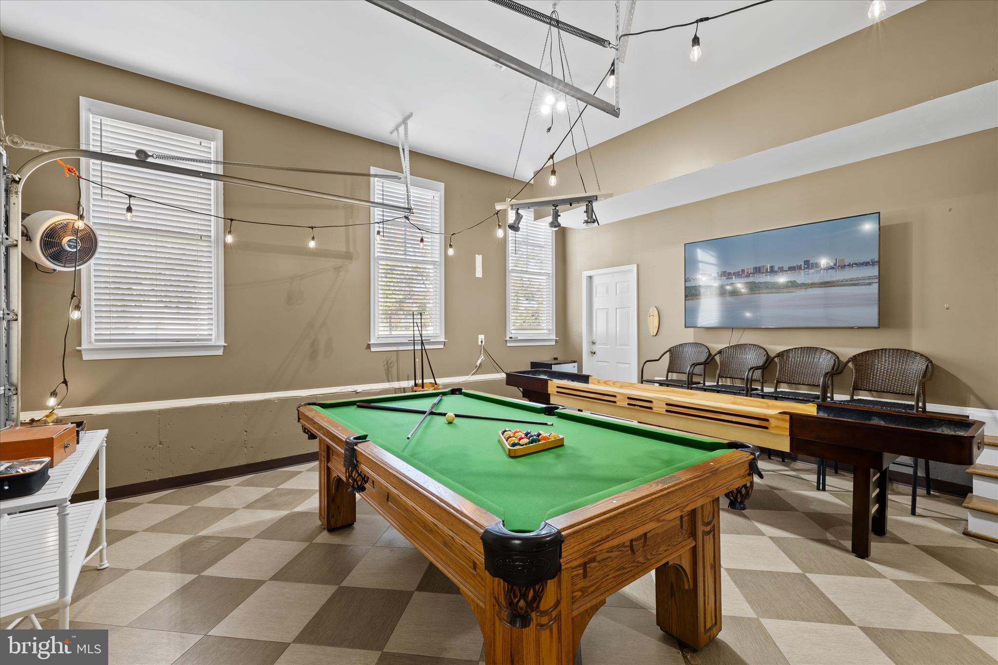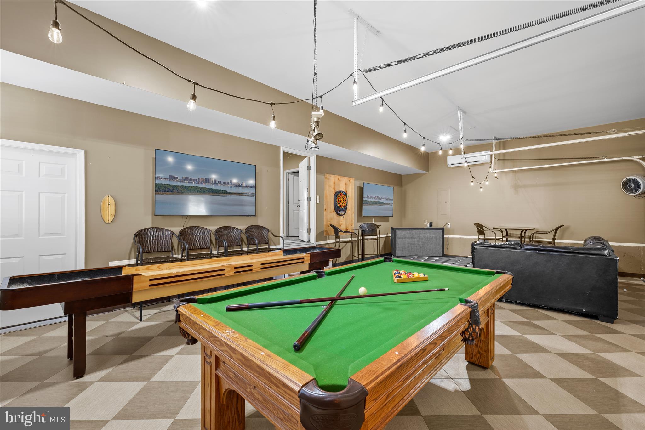 The garage has been reimagined as a vibrant game and entertainment area, complete with billiards, shuffleboard, and a comfortable seating area for movie nights, offering a fun and unexpected extension of the home's living space. FURNITURE is Negotiable via separate agreement.