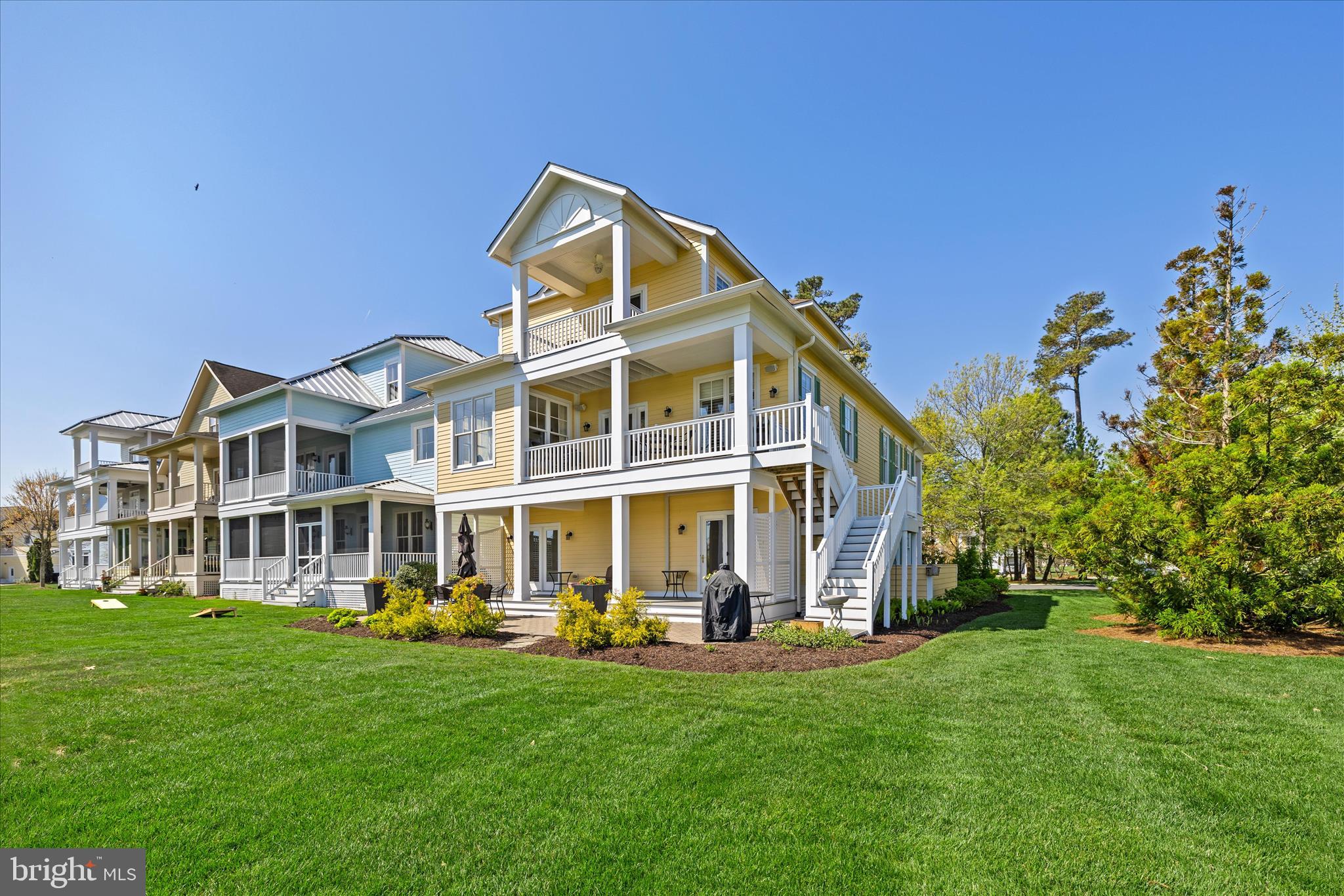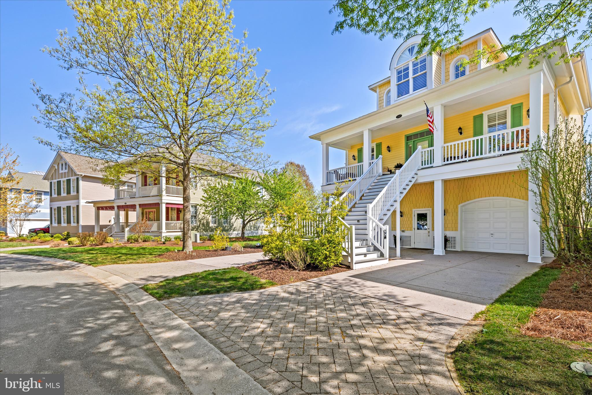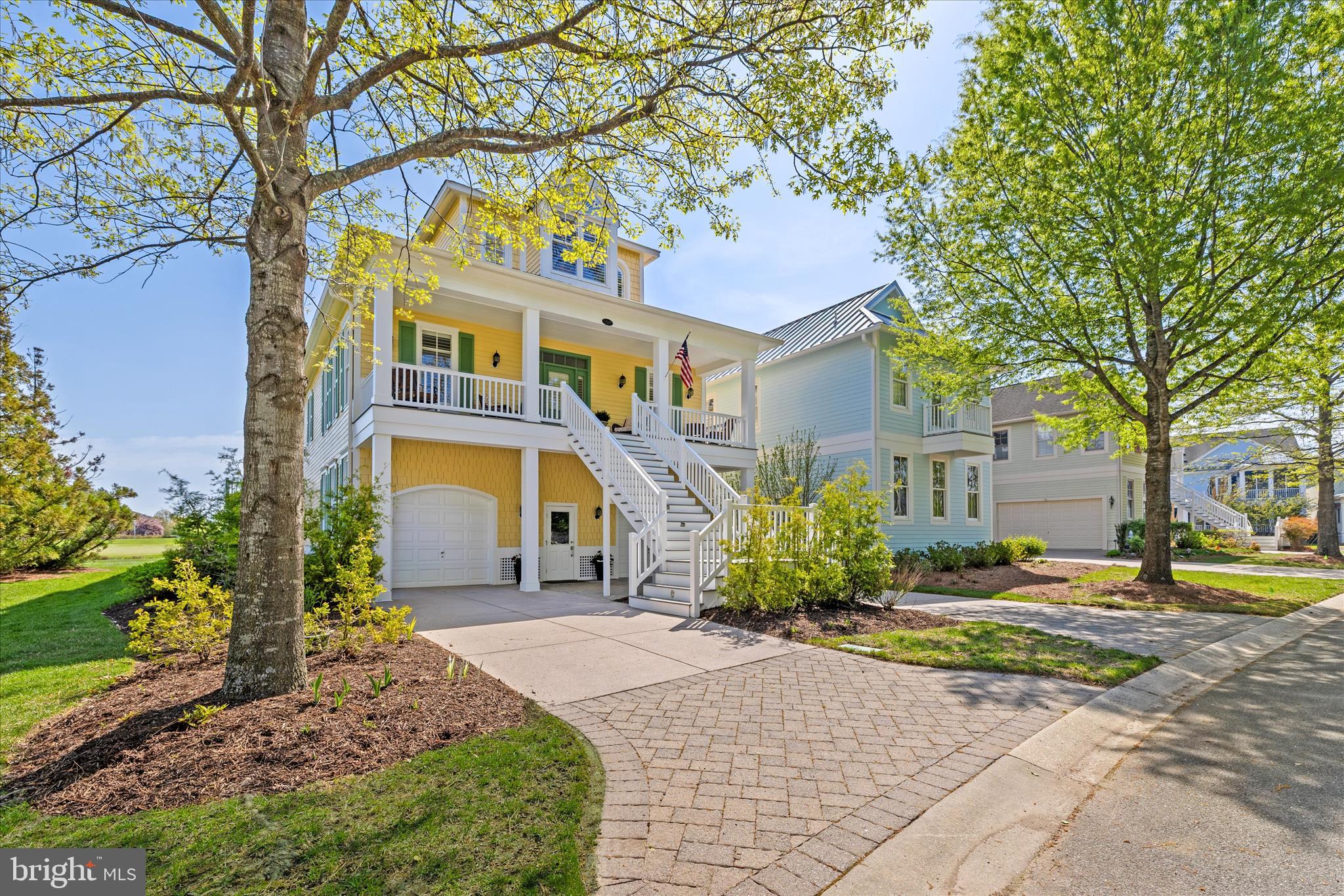 Classic coastal elegance defines this Hampton floor plan, showcasing a stately front staircase and timeless center hall design that creates both presence and flow. Thoughtfully designed across three levels, the home offers multiple porches at the front and rear, inviting you to enjoy outdoor living from every vantage point. A welcoming sidewalk leads from the driveway to the backyard, where exterior steps connect the upper porch to a lower level porch and patio, creating seamless access for entertaining and everyday enjoyment.