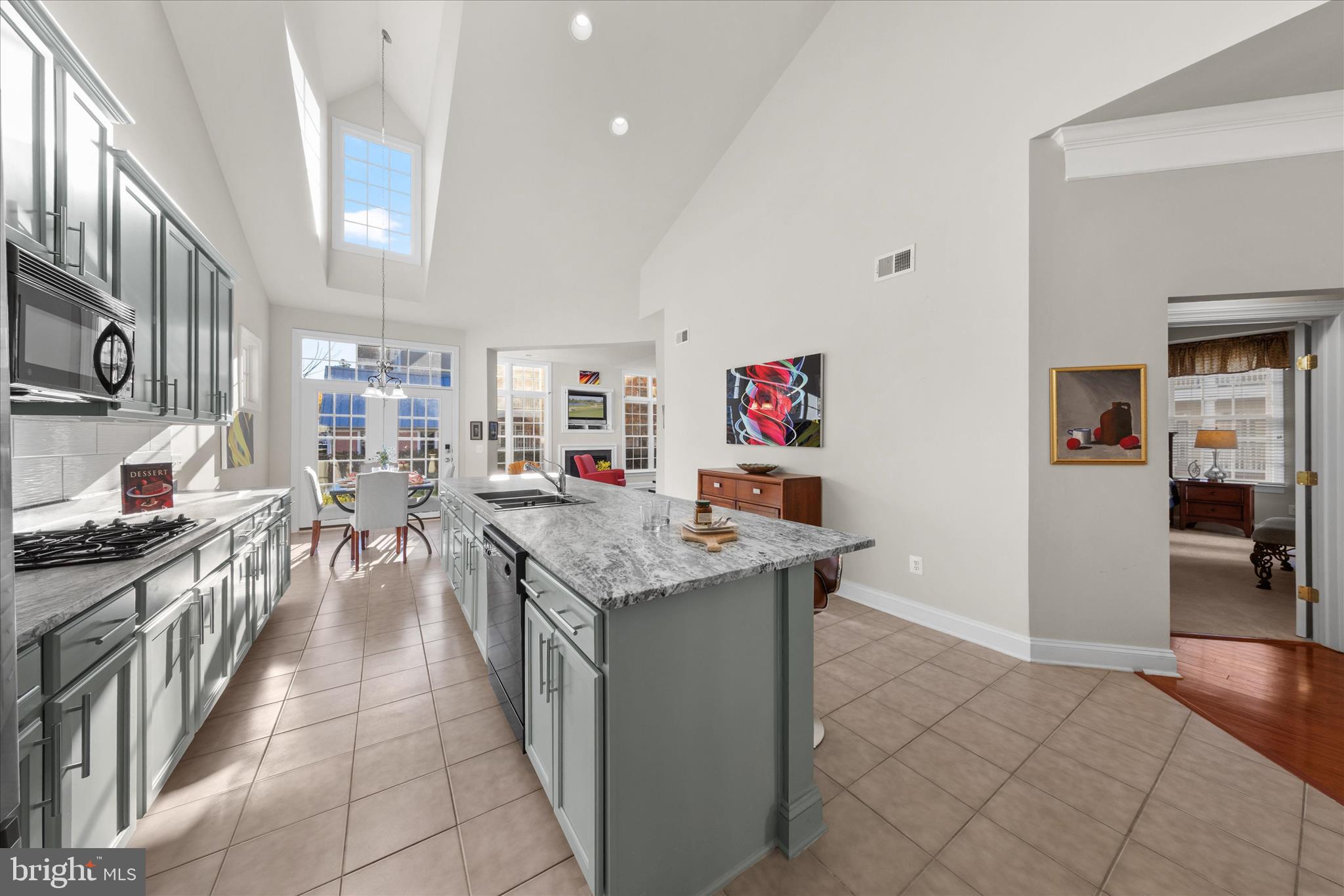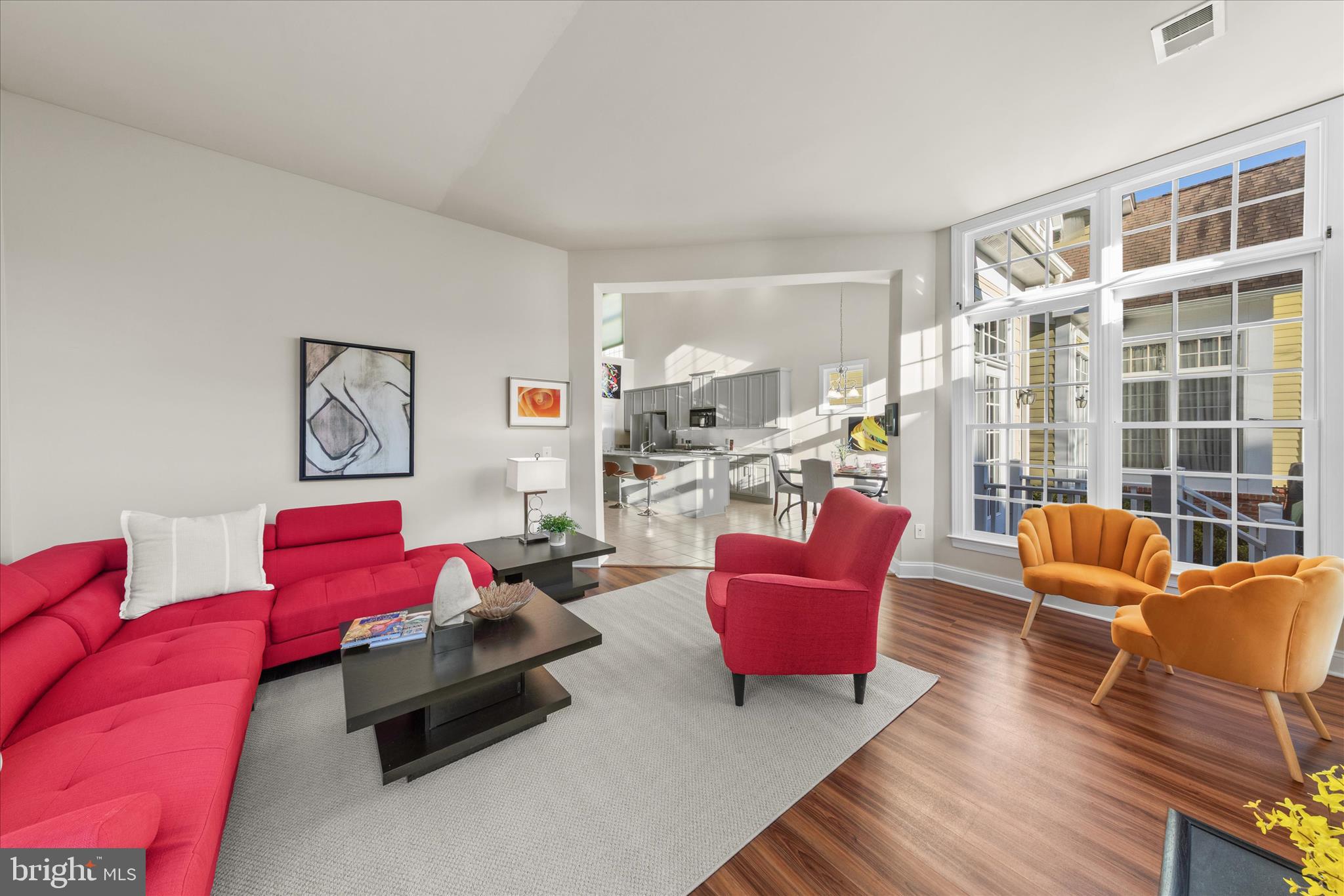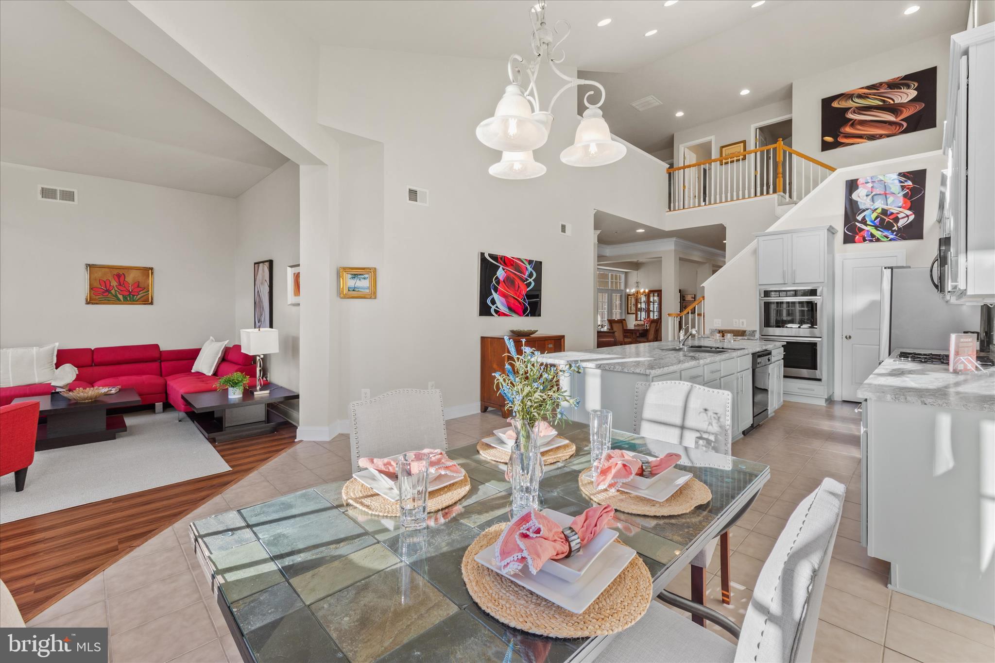 The welcoming main level is designed for easy everyday living, featuring a spacious first-floor primary suite with ample privacy, a dedicated study ideal for remote work or quiet reading, and two dining areas that accommodate everything from casual family meals to formal entertaining. Large windows fill the space with natural light, highlighting the home's open, airy feel.