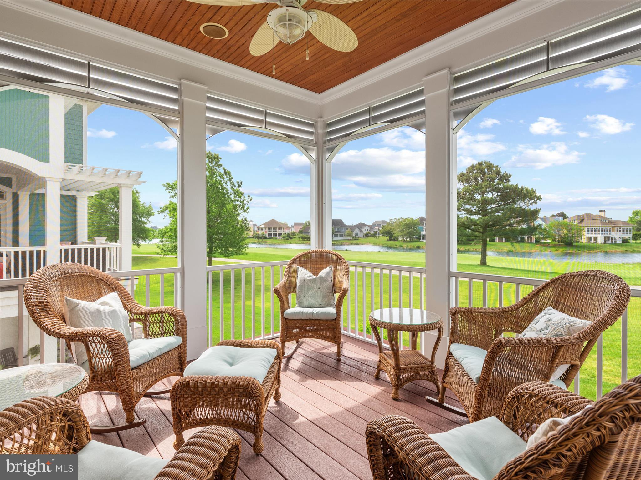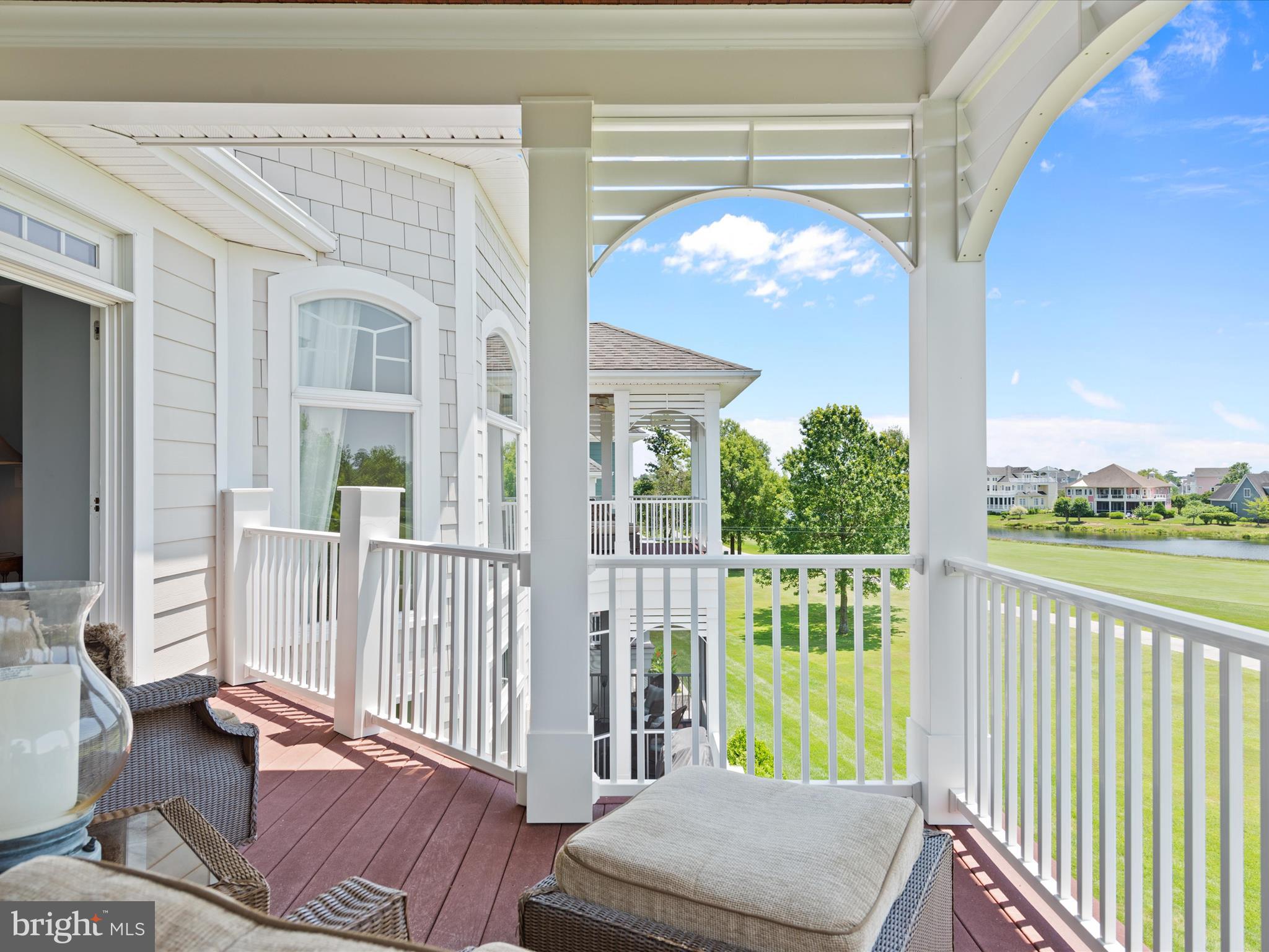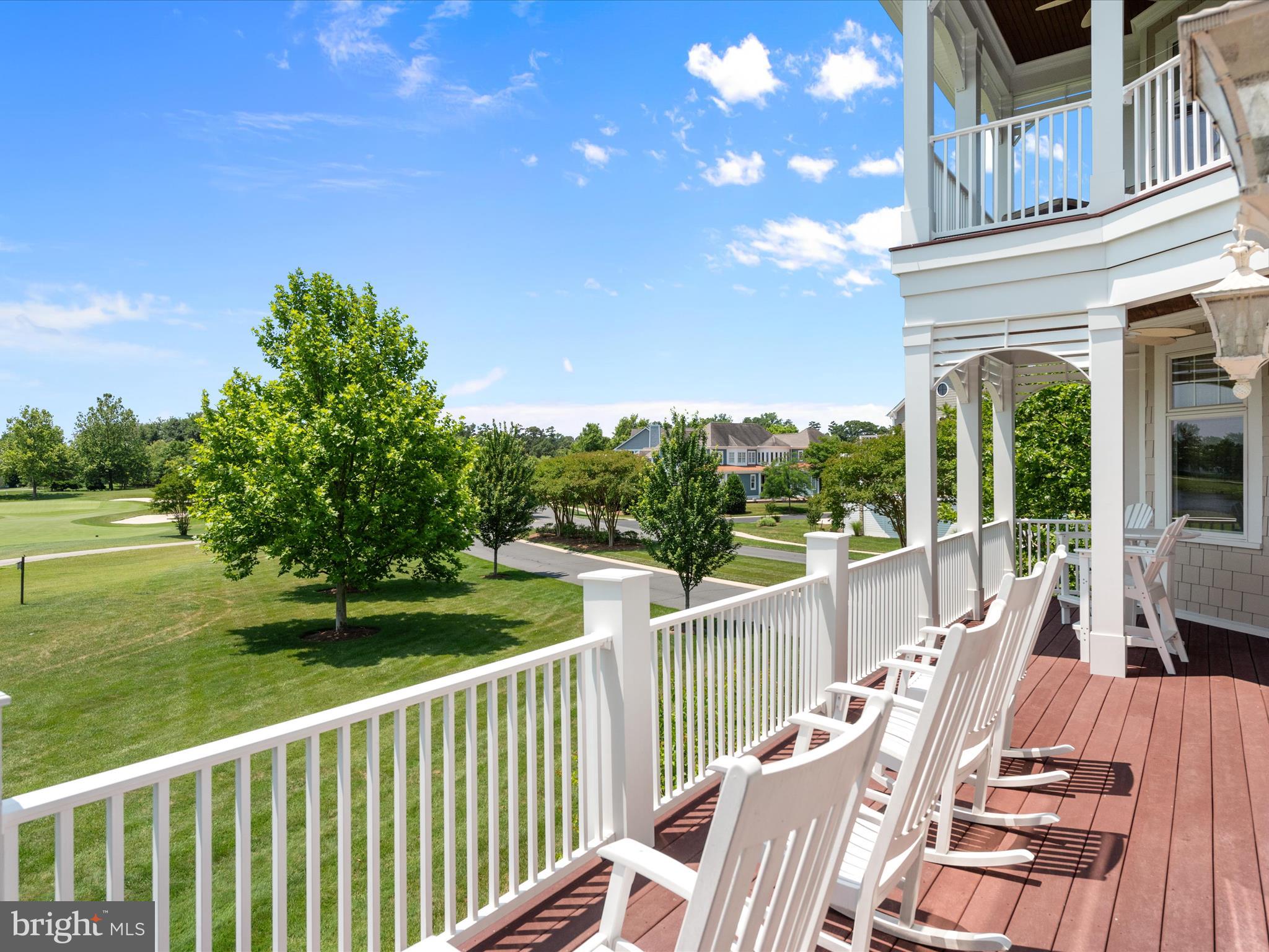 Luxurious golf course living is yours in this stunning 5720 sq ft, 5-bedroom home in the gated, private country club community, The Peninsula on the Indian River Bay. Elegantly designed, expertly appointed, & beautifully maintained, this unique & rare custom designed Echelon home is nestled in a prime location & boasts unparalleled views of the #1 handicap,11th hole. Click on the VIDEO. Enjoy gorgeous sunsets & serene pond vistas from both the front & rear of the home. Coastal southern design sets the tone, a timeless oasis which never seems to get old. Leave the cares of the world behind & enjoy an active lifestyle that is also peaceful and relaxed. This home is centrally located within the 5-star Troon managed community which is like no other on the Delmar peninsula. The design details are perfect for single or dual ownership providing many options to consider as it's cleverly crafted with 2 beautiful full master suites and ensuites. Discover a meticulously designed interior that combines elegance with functionality. Custom designed woodworking with master craftsmanship is evident in trim details throughout every level of this home; seldom seen in homes today. Brazilian Cherry solid hardwood flooring throughout the main living area is complimented by custom natural stone flooring and custom stone inlays. The 2-story Family room is highlighted by a wall of windows on both the front and rear of this home to take in the magnificent views, along with a soaring 2-story custom fireplace & coffered ceiling with recessed accent lighting. The fully equipped gourmet Kitchen and large central island with seating for five enable you to enjoy an unmatched and complete culinary and entertaining experience. Adjacent is a spacious Dining area accommodating up to 12. Two luxurious primary Bedroom suites on separate floors include fireplaces, octagonal sitting rooms & outdoor seating. Ensuite Baths are a haven, one with an extra-large shower with steam and a built-in beverage refrigerator; the other, a jacuzzi tub, large shower & both with dressing rooms. The main level hosts an in-law suite with a customized ensuite bath with a step-in shower & private laundry. Two additional bedrooms on the third floor share a Jack-n-Jill bath, room for family & friends. The lower level is perfect for relaxing & entertaining with a surround sound home theater, pool table, custom drink rail, full bath, laundry (making for a total of 3) & is designed to accommodate a future wet bar. A room that currently is used as a bunk room could easily convert to a spectacular wine room. A 3-story elevator features a beautiful wood interior. This spacious home is supported by 3 modern high efficiency HVAC systems and two on-demand Rinai hot water heaters for reliable & constant comfort & efficiency. Security & fire alarm systems with remote access, smart thermostats, & digital exterior door lock for added security & convenience. Custom window treatments, plantation shutters, & specialty high-end ceiling fans are featured throughout. Front and rear Low Country style decks, porches, & a screened porch with fans make for hours of outdoor enjoyment. Enjoy the Peninsula community and its exceptional amenities. The clubhouse offers dining, pro shop, practice areas, & a Jack Nicklaus golf course. Lakeside Village features pools, fitness center, classes, tennis, pickleball, and more. A nature center, beach, and fishing pier are nearby. Experience a vibrant lifestyle for relaxation and recreation making you feel alive and well.