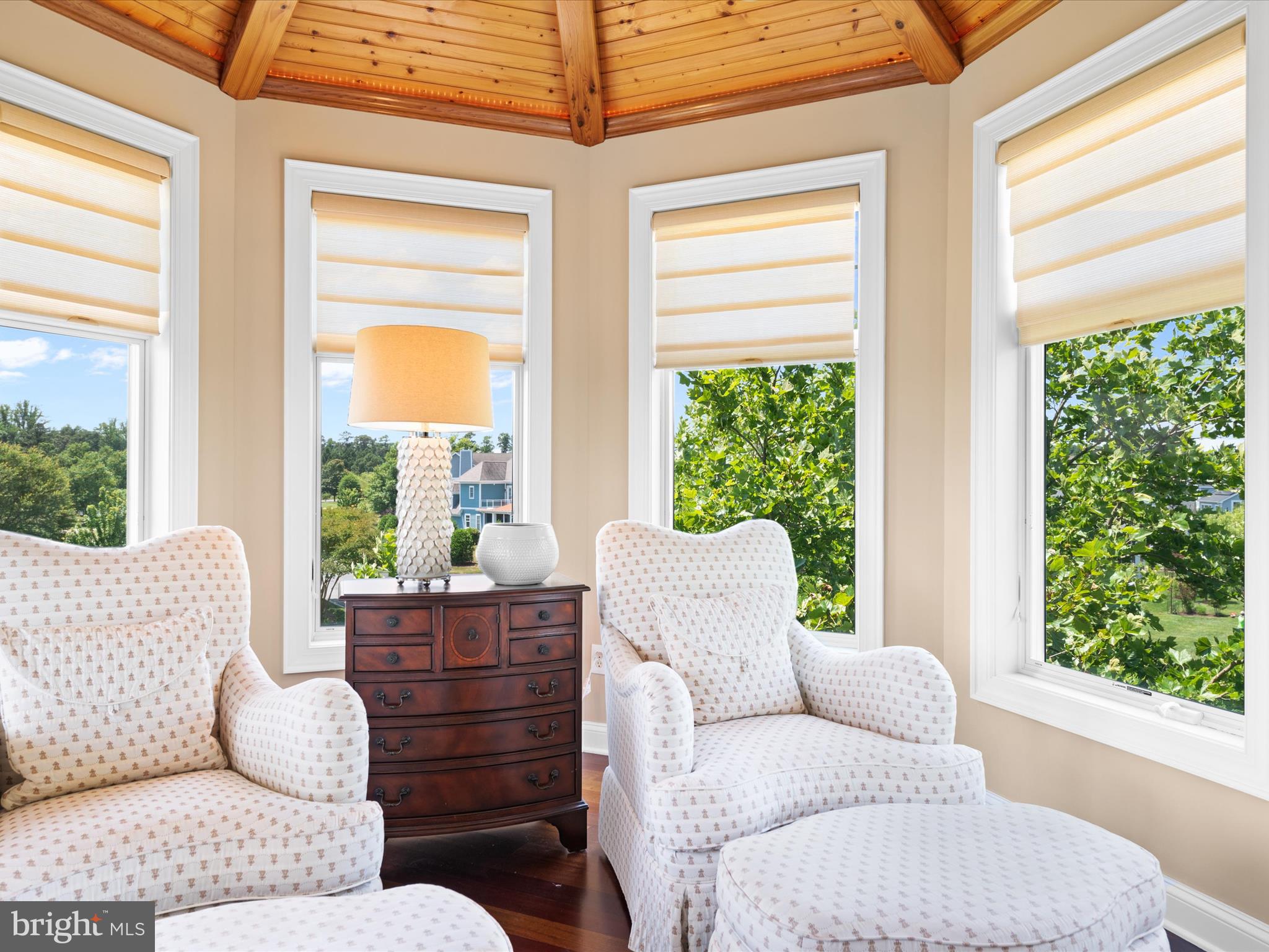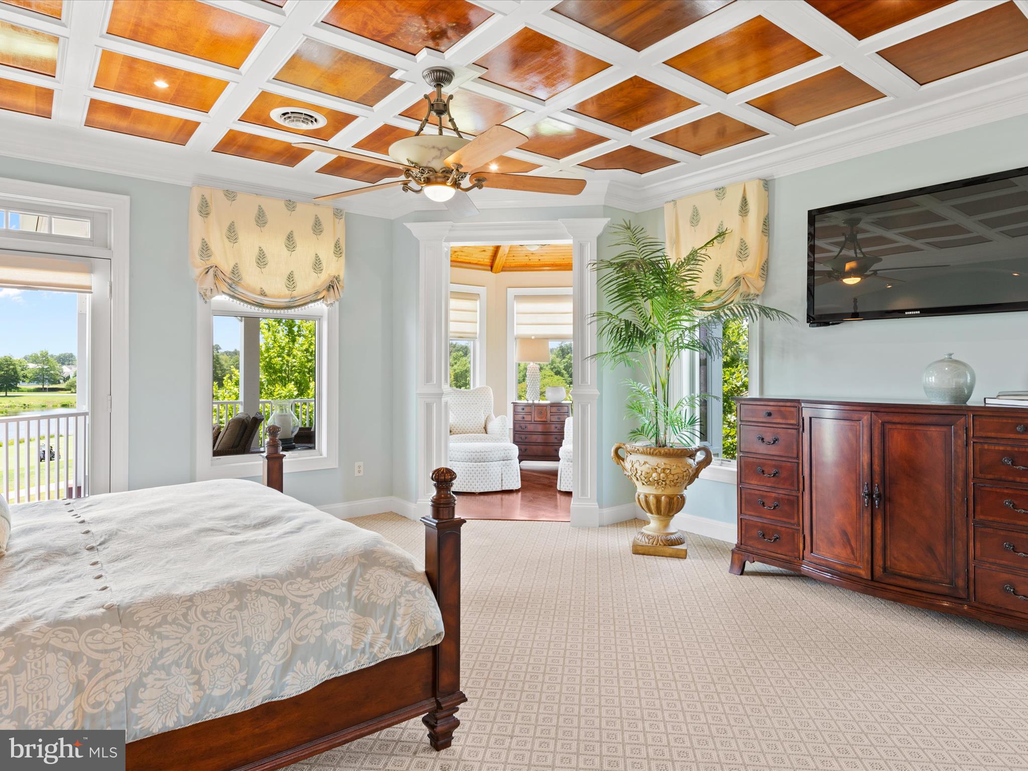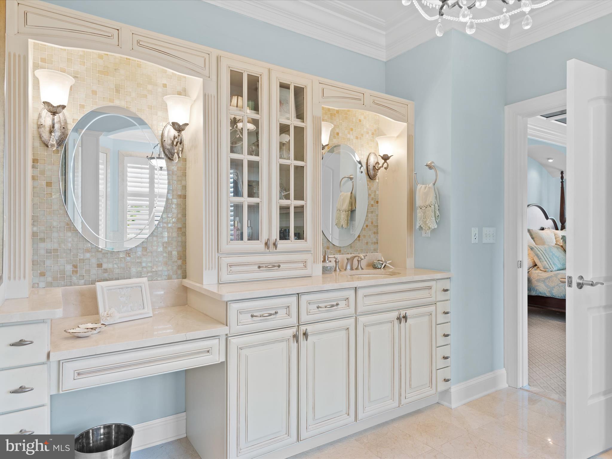 Luxurious golf course living is yours in this stunning 5720 sq ft, 5-bedroom home in the gated, private country club community, The Peninsula on the Indian River Bay. Elegantly designed, expertly appointed, & beautifully maintained, this unique & rare custom designed Echelon home is nestled in a prime location & boasts unparalleled views of the #1 handicap,11th hole. Click on the VIDEO. Enjoy gorgeous sunsets & serene pond vistas from both the front & rear of the home. Coastal southern design sets the tone, a timeless oasis which never seems to get old. Leave the cares of the world behind & enjoy an active lifestyle that is also peaceful and relaxed. This home is centrally located within the 5-star Troon managed community which is like no other on the Delmar peninsula. The design details are perfect for single or dual ownership providing many options to consider as it's cleverly crafted with 2 beautiful full master suites and ensuites. Discover a meticulously designed interior that combines elegance with functionality. Custom designed woodworking with master craftsmanship is evident in trim details throughout every level of this home; seldom seen in homes today. Brazilian Cherry solid hardwood flooring throughout the main living area is complimented by custom natural stone flooring and custom stone inlays. The 2-story Family room is highlighted by a wall of windows on both the front and rear of this home to take in the magnificent views, along with a soaring 2-story custom fireplace & coffered ceiling with recessed accent lighting. The fully equipped gourmet Kitchen and large central island with seating for five enable you to enjoy an unmatched and complete culinary and entertaining experience. Adjacent is a spacious Dining area accommodating up to 12. Two luxurious primary Bedroom suites on separate floors include fireplaces, octagonal sitting rooms & outdoor seating. Ensuite Baths are a haven, one with an extra-large shower with steam and a built-in beverage refrigerator; the other, a jacuzzi tub, large shower & both with dressing rooms. The main level hosts an in-law suite with a customized ensuite bath with a step-in shower & private laundry. Two additional bedrooms on the third floor share a Jack-n-Jill bath, room for family & friends. The lower level is perfect for relaxing & entertaining with a surround sound home theater, pool table, custom drink rail, full bath, laundry (making for a total of 3) & is designed to accommodate a future wet bar. A room that currently is used as a bunk room could easily convert to a spectacular wine room. A 3-story elevator features a beautiful wood interior. This spacious home is supported by 3 modern high efficiency HVAC systems and two on-demand Rinai hot water heaters for reliable & constant comfort & efficiency. Security & fire alarm systems with remote access, smart thermostats, & digital exterior door lock for added security & convenience. Custom window treatments, plantation shutters, & specialty high-end ceiling fans are featured throughout. Front and rear Low Country style decks, porches, & a screened porch with fans make for hours of outdoor enjoyment. Enjoy the Peninsula community and its exceptional amenities. The clubhouse offers dining, pro shop, practice areas, & a Jack Nicklaus golf course. Lakeside Village features pools, fitness center, classes, tennis, pickleball, and more. A nature center, beach, and fishing pier are nearby. Experience a vibrant lifestyle for relaxation and recreation making you feel alive and well.