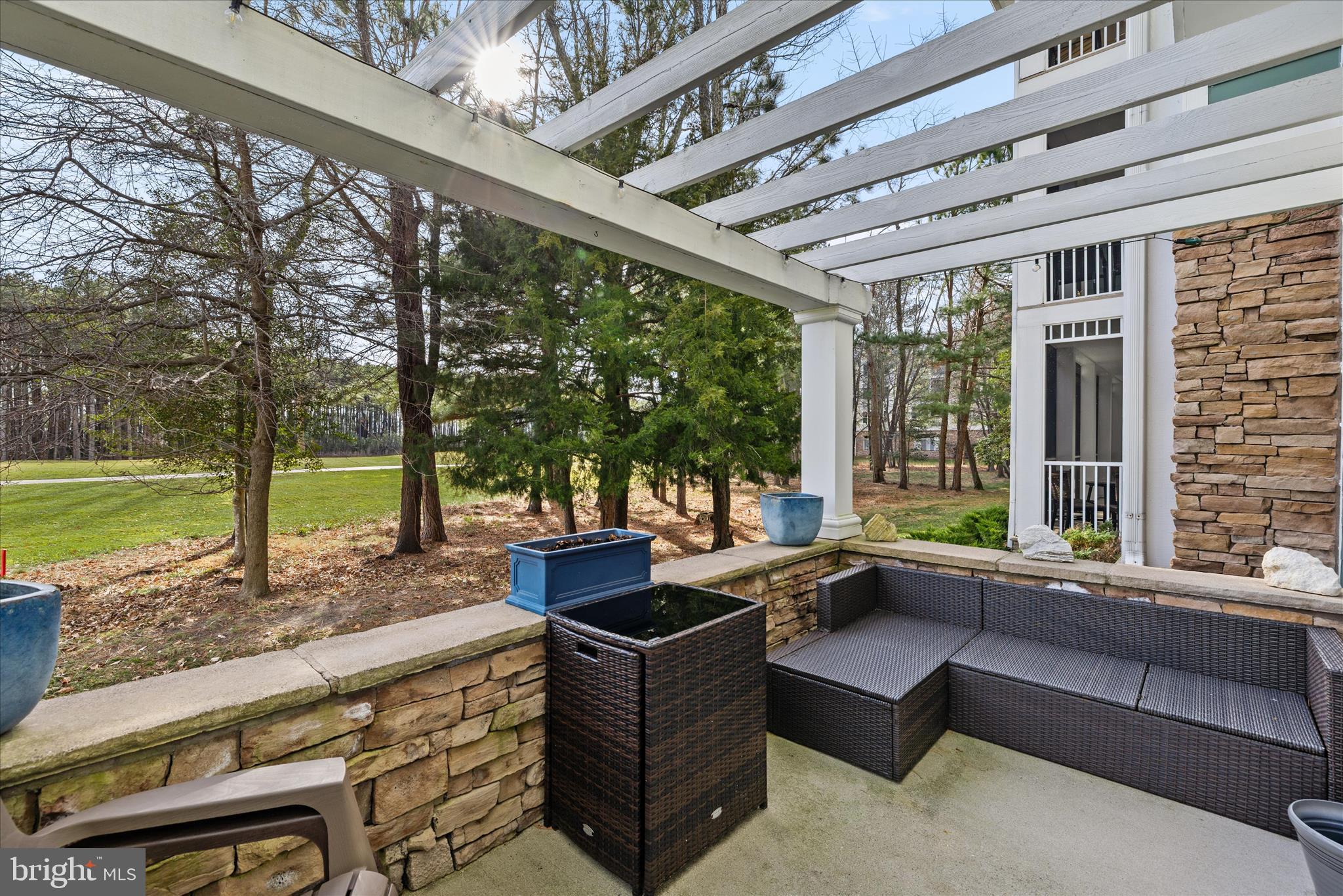 Best value three bedroom condominium in the Peninsula. Welcome to Windswept Drive, Unit 9101! Perfectly positioned along the 6th fairway of the Jack Nicklaus Signature golf course, this residence enjoys a peaceful, private backdrop of golf, ponds and woods, with glimpses stretching toward the Indian River Bay. A pergola-covered patio extends the living space outdoors and invites quiet mornings or relaxed evenings overlooking the course. Inside, the gourmet kitchen features granite countertops, stainless steel appliances, custom display cabinetry, and a generous prep space, opening to the dining and living areas, ideal for effortless entertaining. The living room is anchored by a gas fireplace, built-in cabinetry and large windows that frame the serene outdoor views.