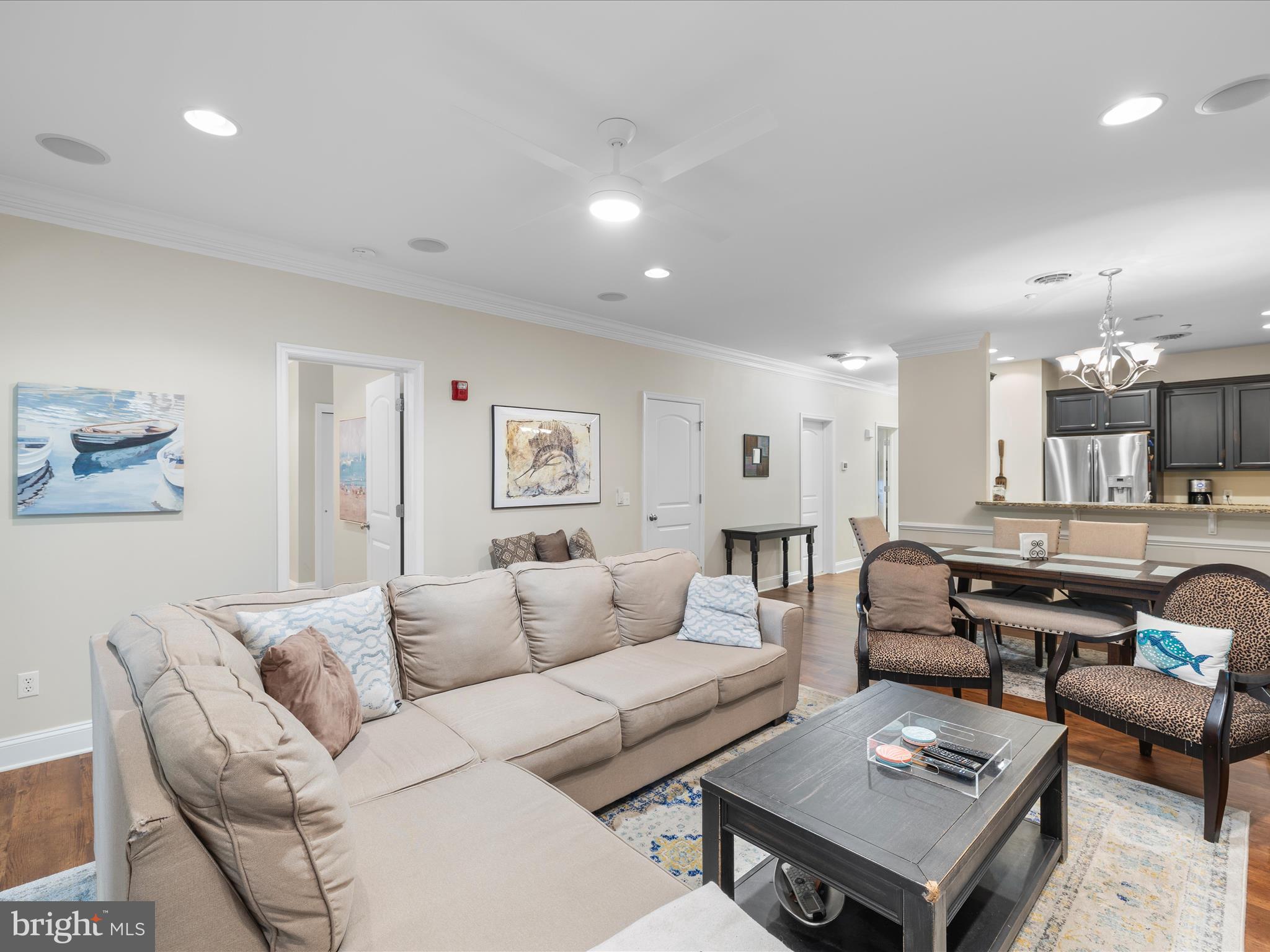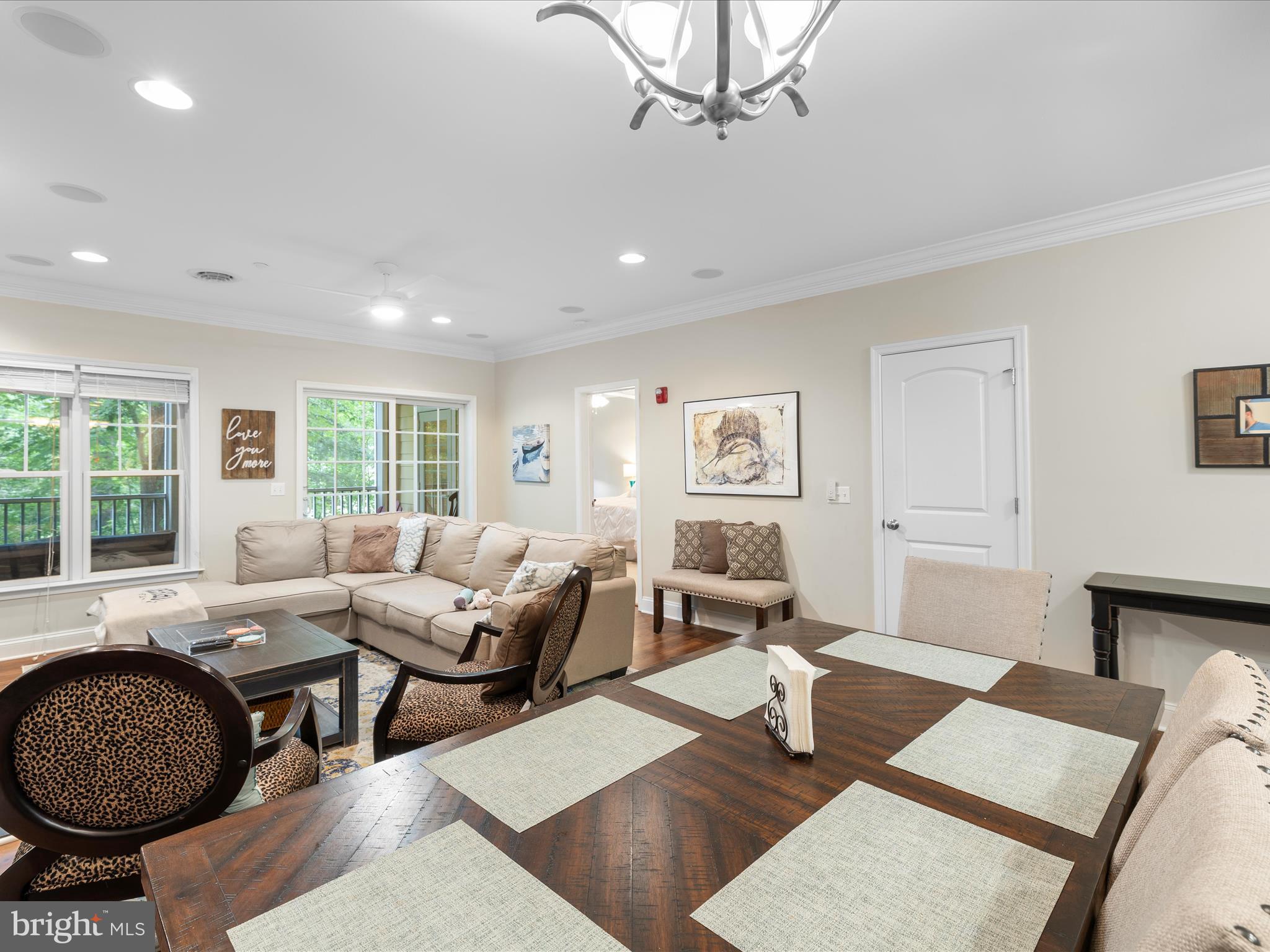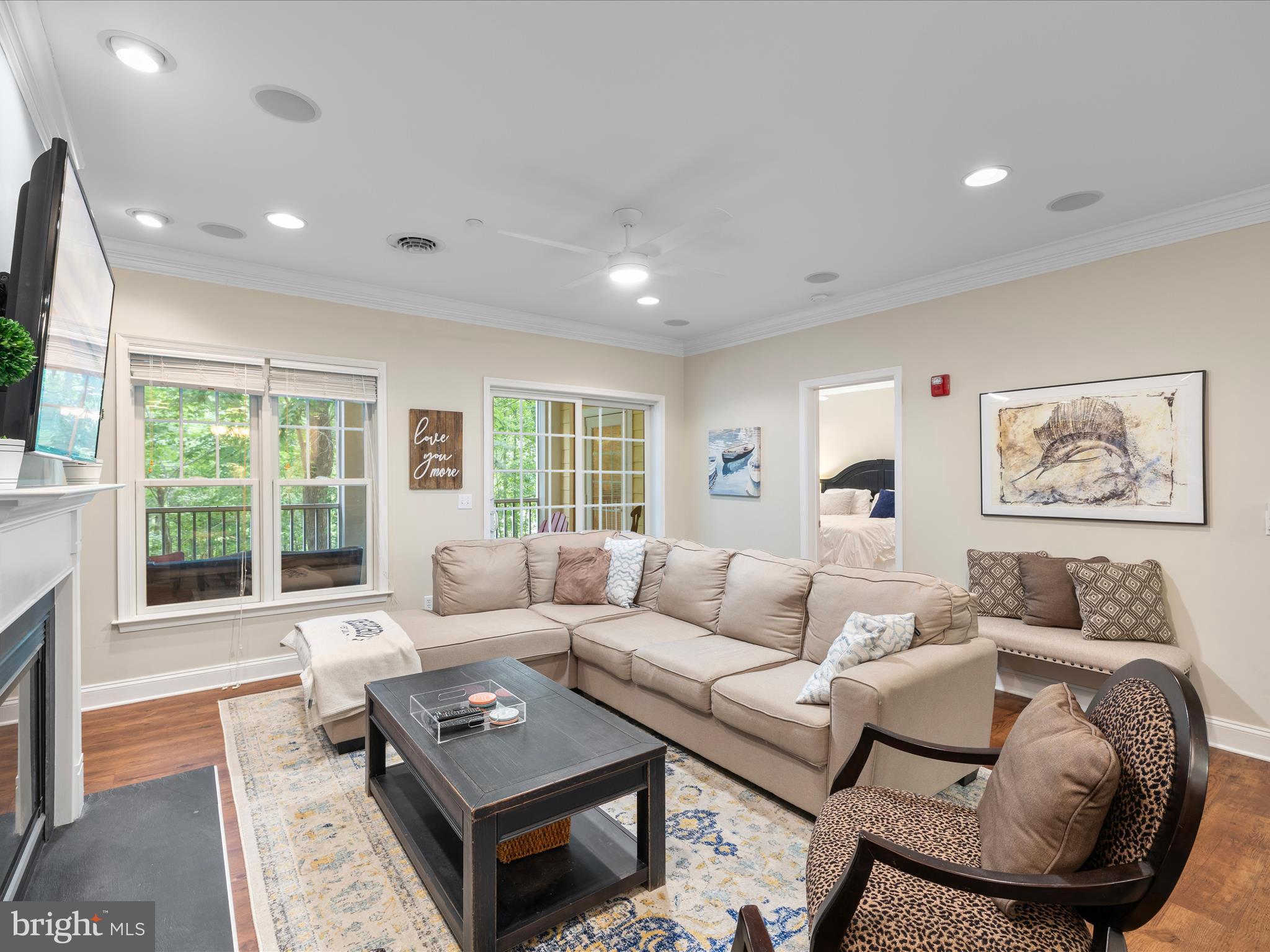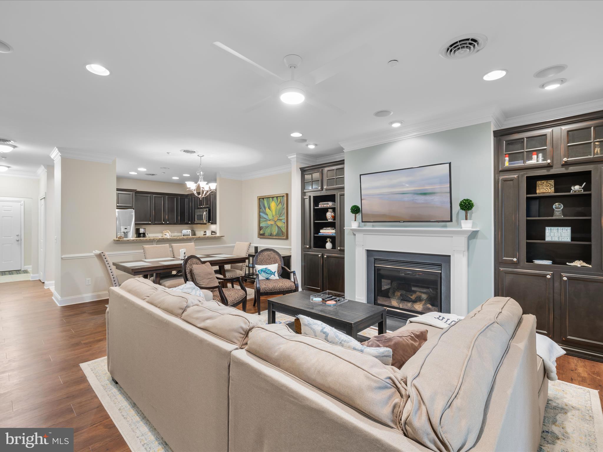 Beautifully FURNISHED and thoughtfully maintained, this charming 2-bedroom, 2-bath condo in Windswept offers stylish comfort and a serene setting. The spacious open-concept layout features commercial-grade luxury vinyl plank flooring, a dedicated dining area, and a sleek kitchen with GE Profile stainless steel appliances, granite countertops, crown molding, and recessed lighting. Custom built-ins cabinetry flanks a gas fireplace adding warmth and character to the living space.