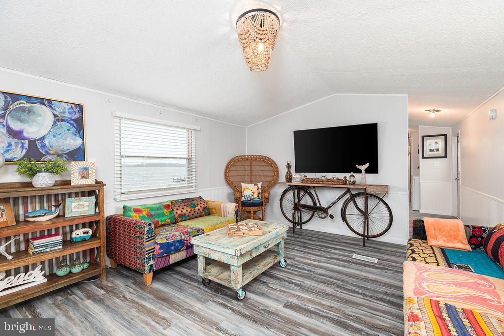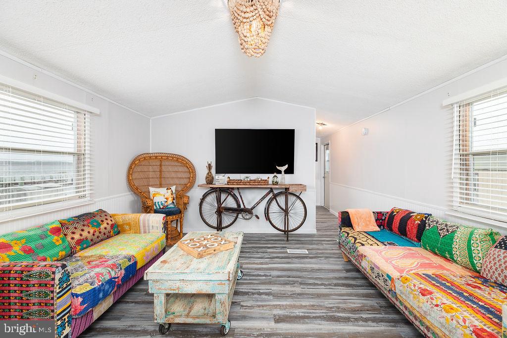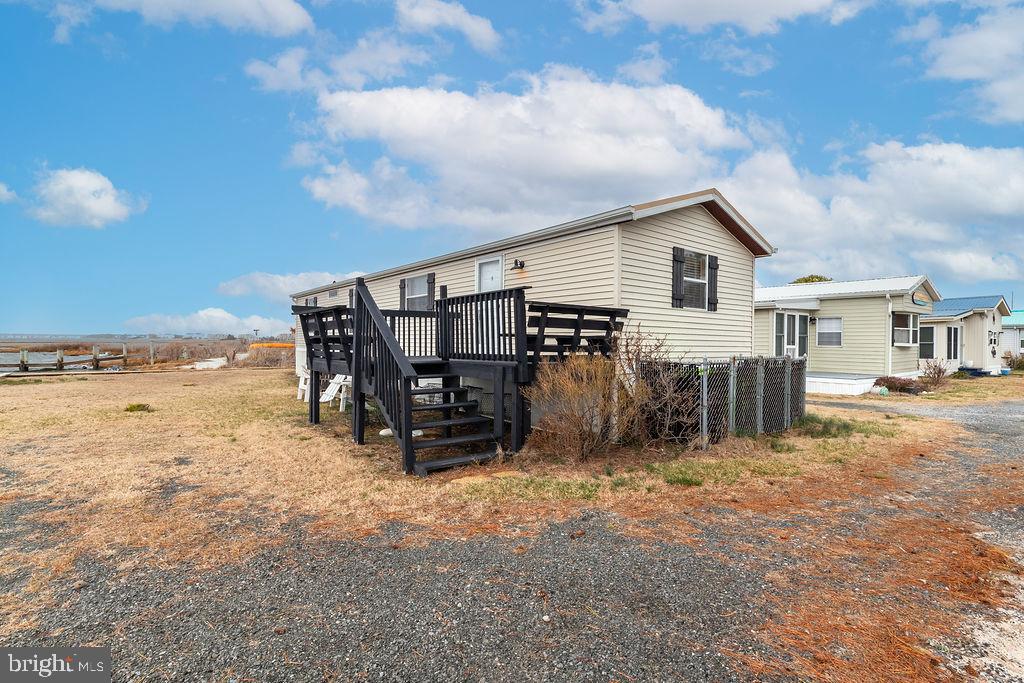 Drastic Price reduction, Bring all offers! "The Point" Very rare that this Bayfront property would be available to purchase in the Summertime Park. With a 200 degree view of the Assawoman Bay and the ability to expand 11 1/2ft from the trailer out and down the lengh of it.. This 14X30 Commandor model mobile home offers Bayviews from every room of the house. The subfloors have been replaced and Vinyl flooring was recently installed throughout the home. There is central heat and air with a tankless water heater for endless hot water. The very large living area could gives plenty room for all of your families activities. There are 2 bay front bedrooms and 1 bath. Full size washer and dryer in the home is such a bonus. Outdoor shower and a Shed also convey.